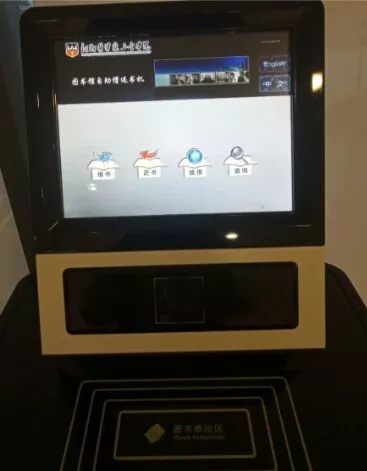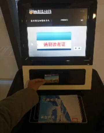 查询 屏幕点击“查询”→选择查询方式→将读者证放置于感应区→屏幕会显示读者所借图书以及借还书的时间。