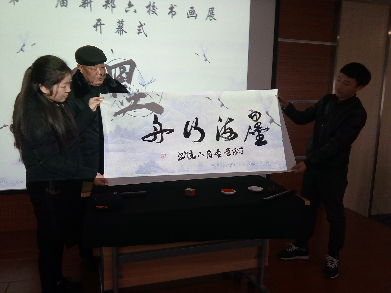 12月17日新乡医学院、河南科技学院、新乡学院、黄河科技学校、河南工学院、新乡医学院三全学院等郑州新乡的六所高校大学生书画联展在三全学院图书馆隆重举行。本届郑新六校书画联展由三全学院图书馆和校团委联合主办,三全学院大学生书画爱好者协会承办。在三全学院大学生书画爱好者协会努力下,在有关部门的重视和支持下,相关高校书画爱好者大力支持和积极参与,经过一多月的酝酿策划,于12月17日在三全学院图书馆隆重开幕。这是三全学院图书馆于今年6月建成开放以来第一次有多所学校参加的展览活动。图书馆华玉民馆长出席开幕式并致辞,校大学生书法爱好者协会指导老师、河南省书画协会会员裴红卫先生现场对作品进行了点评,并为学生挥毫泼墨,演讲示范;沈雁霞副院长、邱永健学务长参观了书画展。 本届展会共收到书画作品453件,其中优秀作品70余件。参展作品题材广泛,有:软笔,硬笔,国画,水粉,素描。内容包括唐诗宋词、传统谚语、名言警句。篆隶行草,各得其章,雍容大气,意境深远。墨香飘散处、佳作已然成,彰显出当今大学生深厚的传统文化底蕴,为三全校园增添了一抹浓重的古韵书画风。