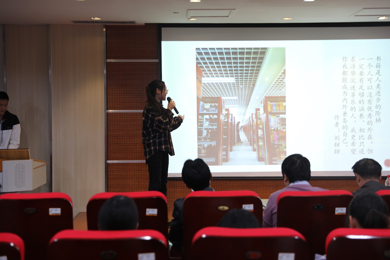 接着进入作品展示环节。选手们精神饱满、情感丰富地对自己的作品进行讲解,全面展现了新一代大学生的自信创新、从容儒雅以及对阅读之美的独特见解。