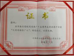 优秀个体被褒奖 “火车跑得快,全靠车头带”。图书馆一系列的优秀活动的顺利开展离不开各位成员的团结配合、默契合作,更不离开优秀的带领人、号召者。图书馆副馆长张帆,将阅读的热爱倾注在这些优秀活动中。活动开展前,张馆长时刻关注;活动过程中,张馆长有序指导;活动结束时,张馆长总结经验。新春伊始,张帆副馆长在河南省高校阅读推广十五周年成果表彰中荣获“优秀阅读推广人”。此外,作为阅读推广的另一优秀组织,“读者服务协会”也务实工作,在河南省高校阅读推广十五周年成果表彰中荣获“优秀读书社团”的称号。