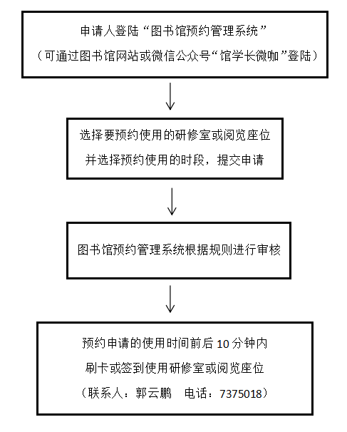图书馆研修室及阅览座位预约使用审批流程图 |