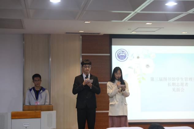 10月24日,新乡医学院三全学院第三届图书馆学生管理委员会长期志愿者见面会在图书馆五楼学术报告厅召开。本次见面会特邀图书馆副馆长张帆、读者服务部主任陈燕、图管会指导老师常亚辉、信息技术管理服务部王玉芬出席,图管会主席团、各部门部长及新一届长期志愿者参会。